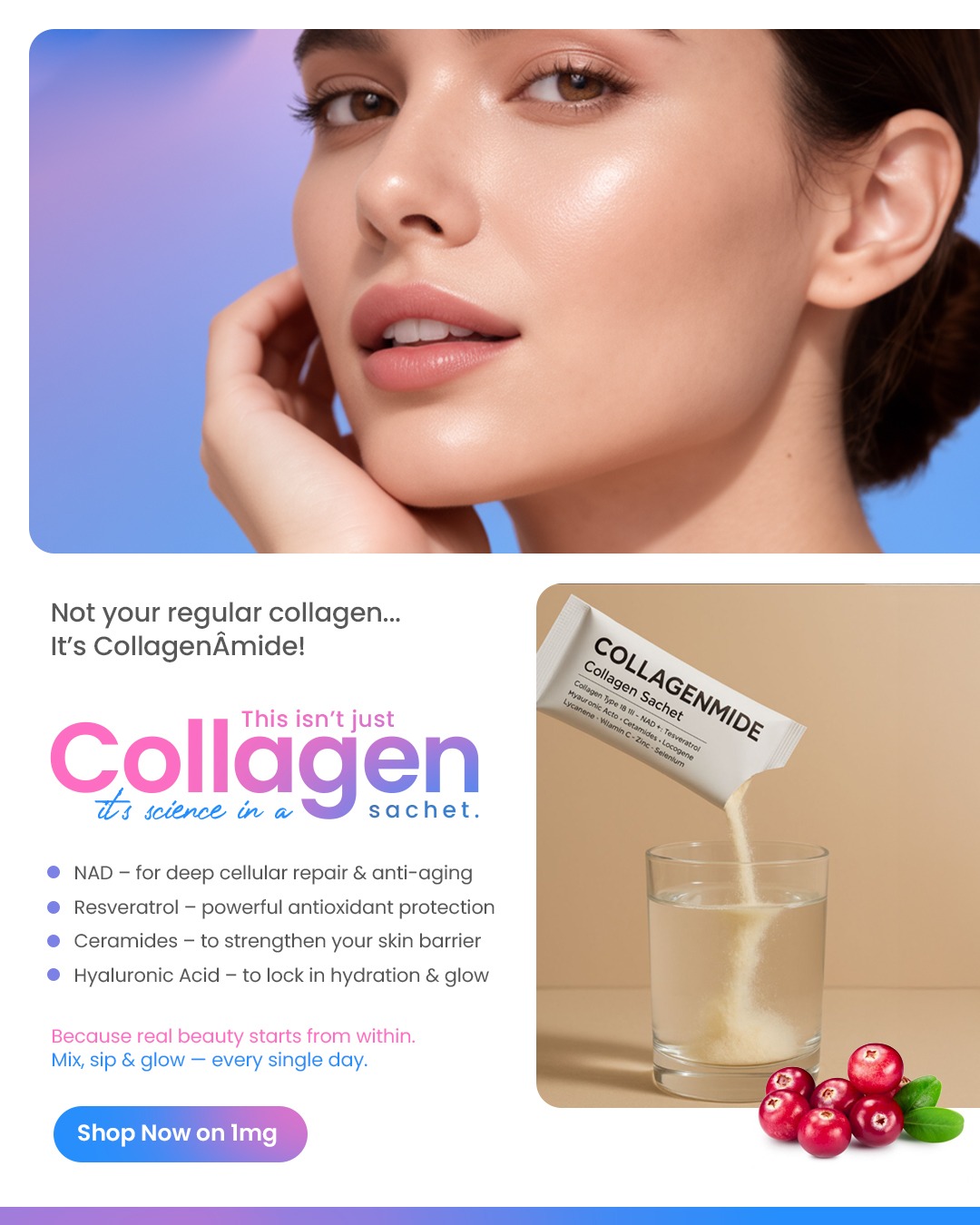 Science-Backed Formulations – Every capsule and sachet is powered by clinically researched ingredients like L-Glutathione, Marine Collagen, Ceramides, and Antioxidants.