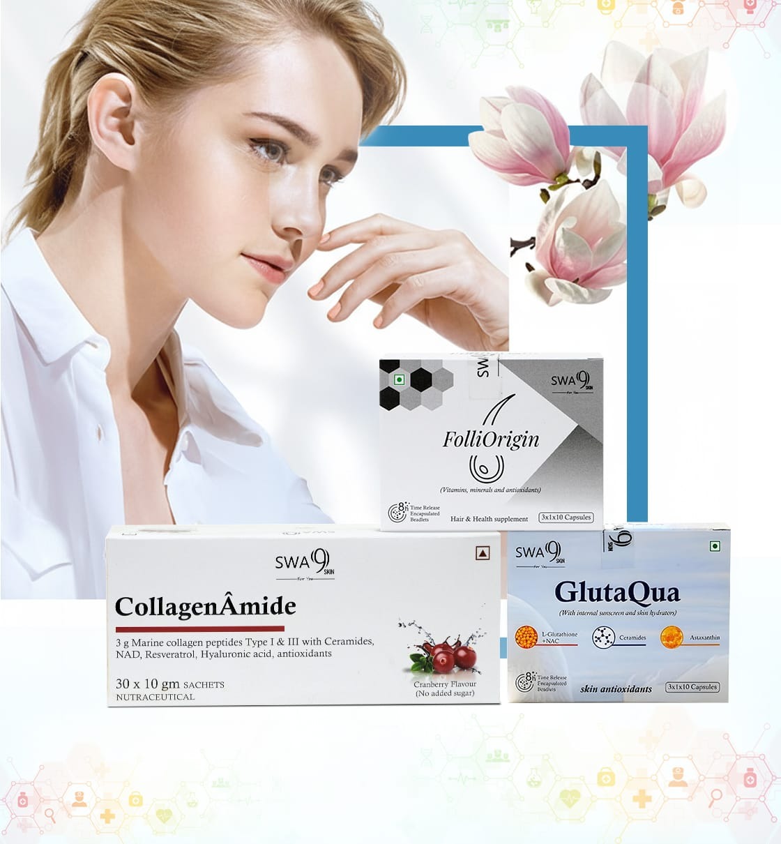 Discover the difference of nutrition-powered beauty with Swa9skin. Whether you want to brighten, hydrate, or protect your skin, our skin antioxidant supplements are designed to help you feel confident, radiant, and beautiful from within.